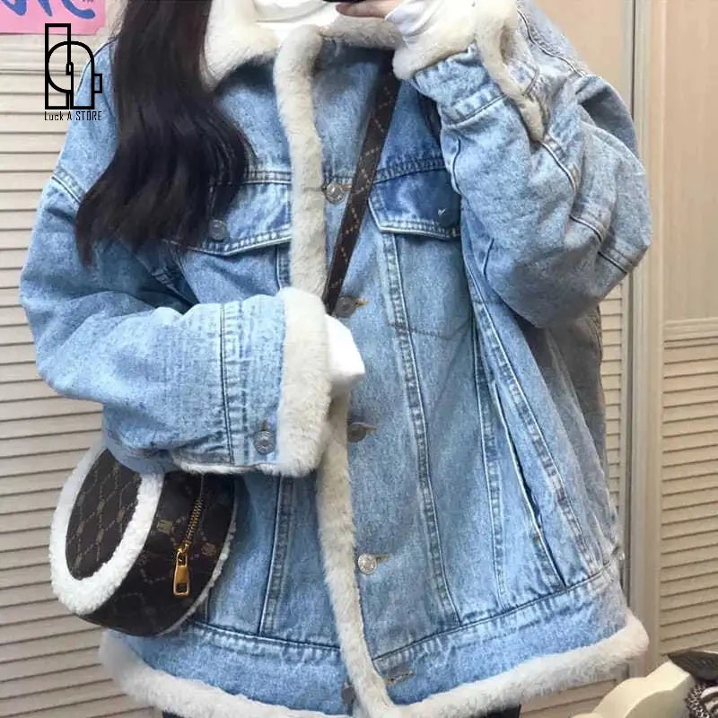 Luck A Both Sides Wear Denim Jacket Female Korean Style Loose Leopard Print Faux Rabbit Fur Coat Winter Autumn Jacket Woman Faux Fur Aliexpress